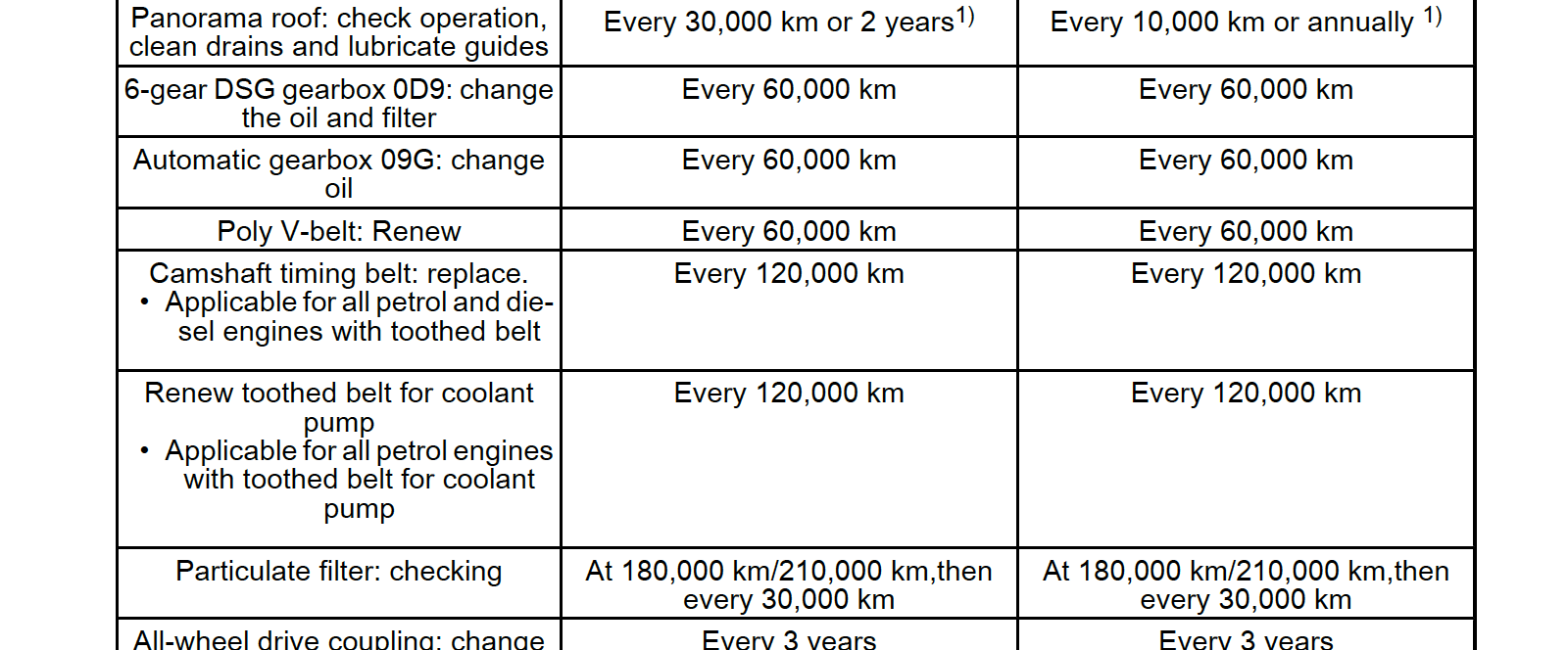 210 хил интервал има само при 2.0 TDI моторите EA288.Бензинките са на 120 хил