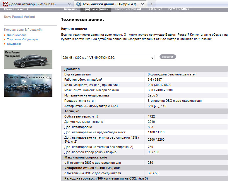 viewtopic.php?f=19&t=233878 Да обясня все пак за по-горните си сравнения - Шкодата от чешкия конфигуратор е Edition CZ - демек "по-арна" от останалите "по земните кълбета" и на всичкото отгоре я наблъсках с всякакви екстри, за да получа тази цена. Ама пък и те не са кой знае колко много. За сметка на това пък в Пасата "нашибах" и разните му там асистенти, "преумори във водача", амбиентни осветления, "самопаркиращи чудесии"* и т.н.
