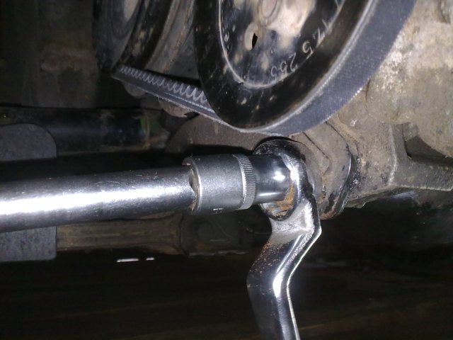 При него има една гайка със зъпчета които се зацепват със зъпчетата на другата планка която държи хидравликата. Тази гайка е номер 22 и аз използвах лула и гидория за да натегна ремъка.