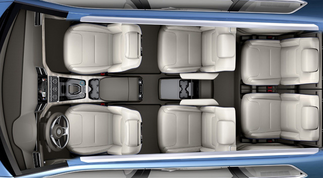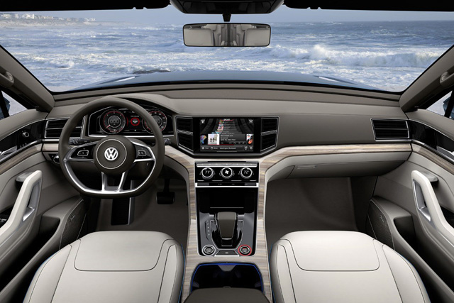 Новият всъдеход е също по-широк и висок, което гарантира внушително пространство в салона. В купето има три реда седалки и в зависимост от предпочитанията на купувача може да се окомплектова с шест или седем места. Най-любопитното е, че CrossBlue е построен на модулната платформа MQB, използвана за далеч по-малкия Golf.