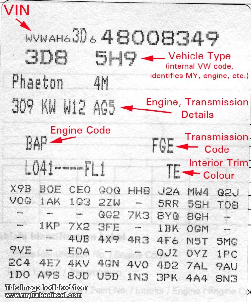 VAG кодове с екстри и инфо на стикера, залепен в багажника