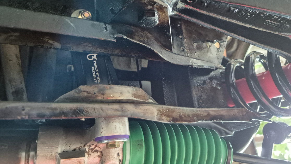 В момента съм разглобил окачването за да сложа нови пружини и амортисьори. Докато чакам да се рециклира рейката се хванах да омажа отдолу за да стопирам ръждите където има тръгнали такива. Следващия път ще опитам да кача някоя снимка.