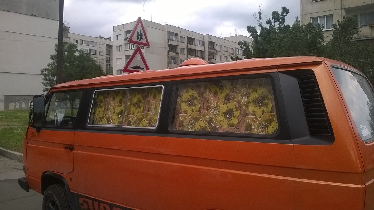 За разходката из Родопите ползвах моите ковери от Мултивана....но на Синхрото нямаше оригинални копчета за поставянето им, се наложи да мислим нищо на бързо и закрепването беше с ластичета, важенца и безопасни игли.