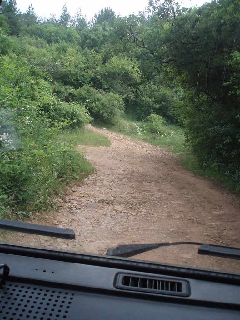 След като стигнахме на високото......последва спускане надолу....На места се налагаше да включвам и бавната скорост защото наклона беше доста стръмен.Моите пасажери стоичести изтърпяваха тръскането и друскането.Пътувахме бавно ,но сигурно из гората