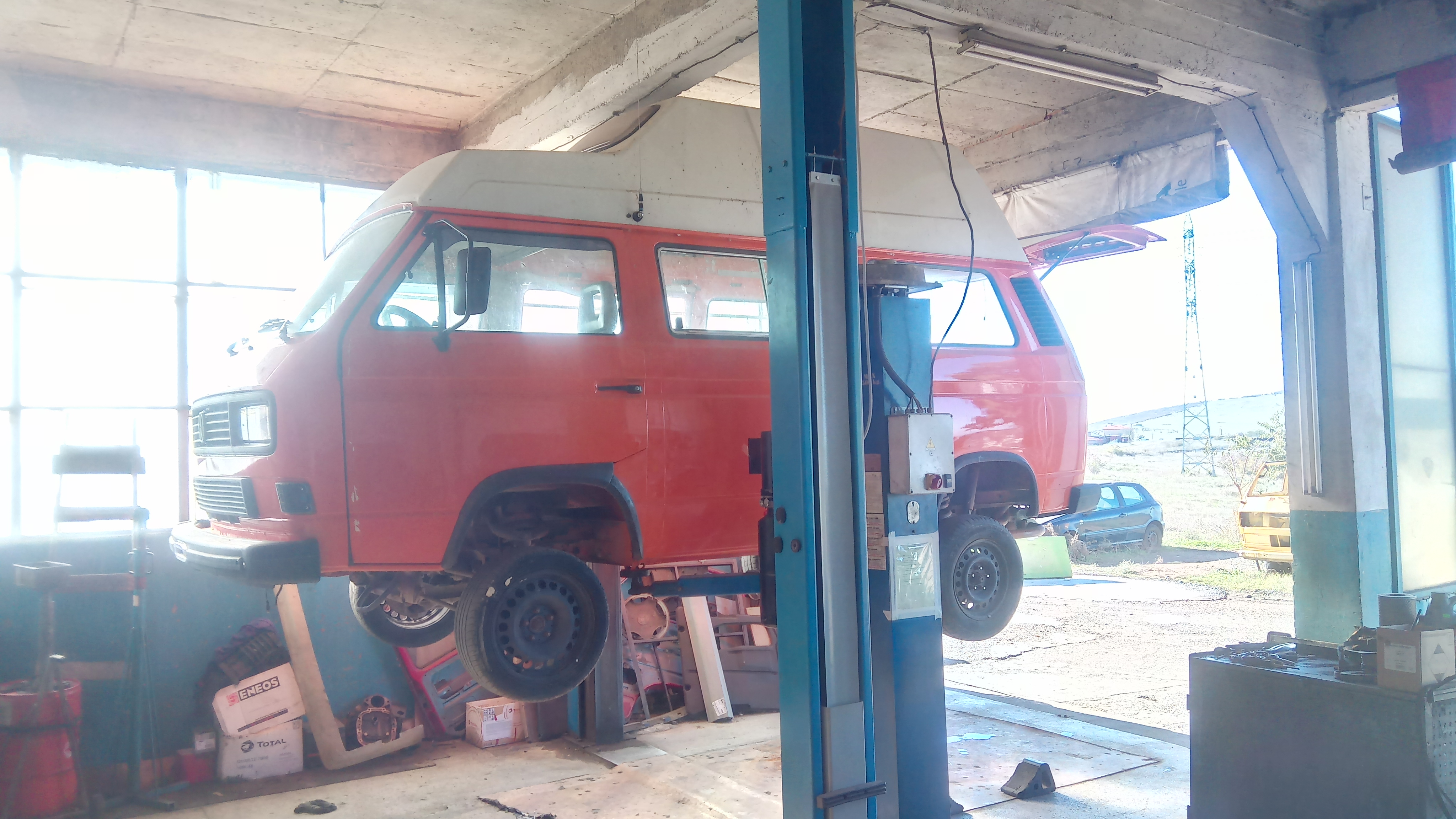 Шило в торба не стои, хайде в сервиза и демонтаж на всичко под купето, почистване на пясък, боядисване, изцяло смяна на всичко по окачването, профилактика на блокажите и подготовка за монтаж на суха дизелова печка.