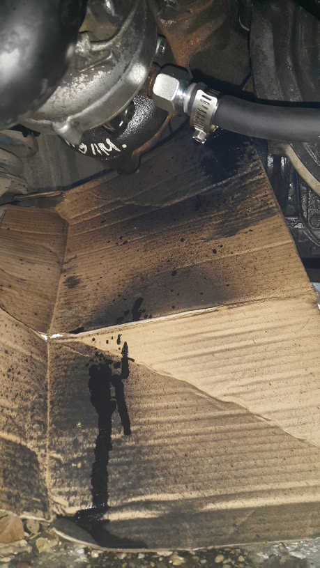 Колега като гледам снимките ми се струва, че е турбината както казва Валсаника. Хвърля ти масло през топлата част на турбината. Пръските по картона при свалена тръба на ауспуха ли са? Син пушек като караш има ли? Ауспуха мазен ли е? Ъгъла на тръбата за изтичането не е проблема. За мен са лагерите на турбината. По добре подмени централната част на турбината и поне ще знаеш, че имаш читава турбина за доста километри.