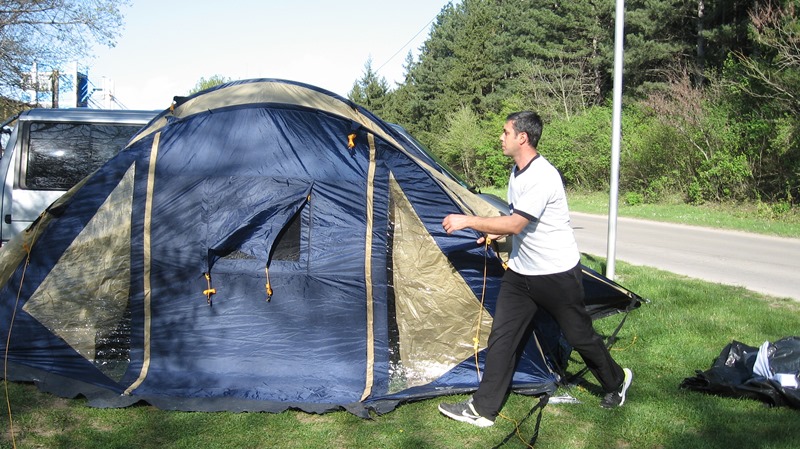 намерих време да опна палатката