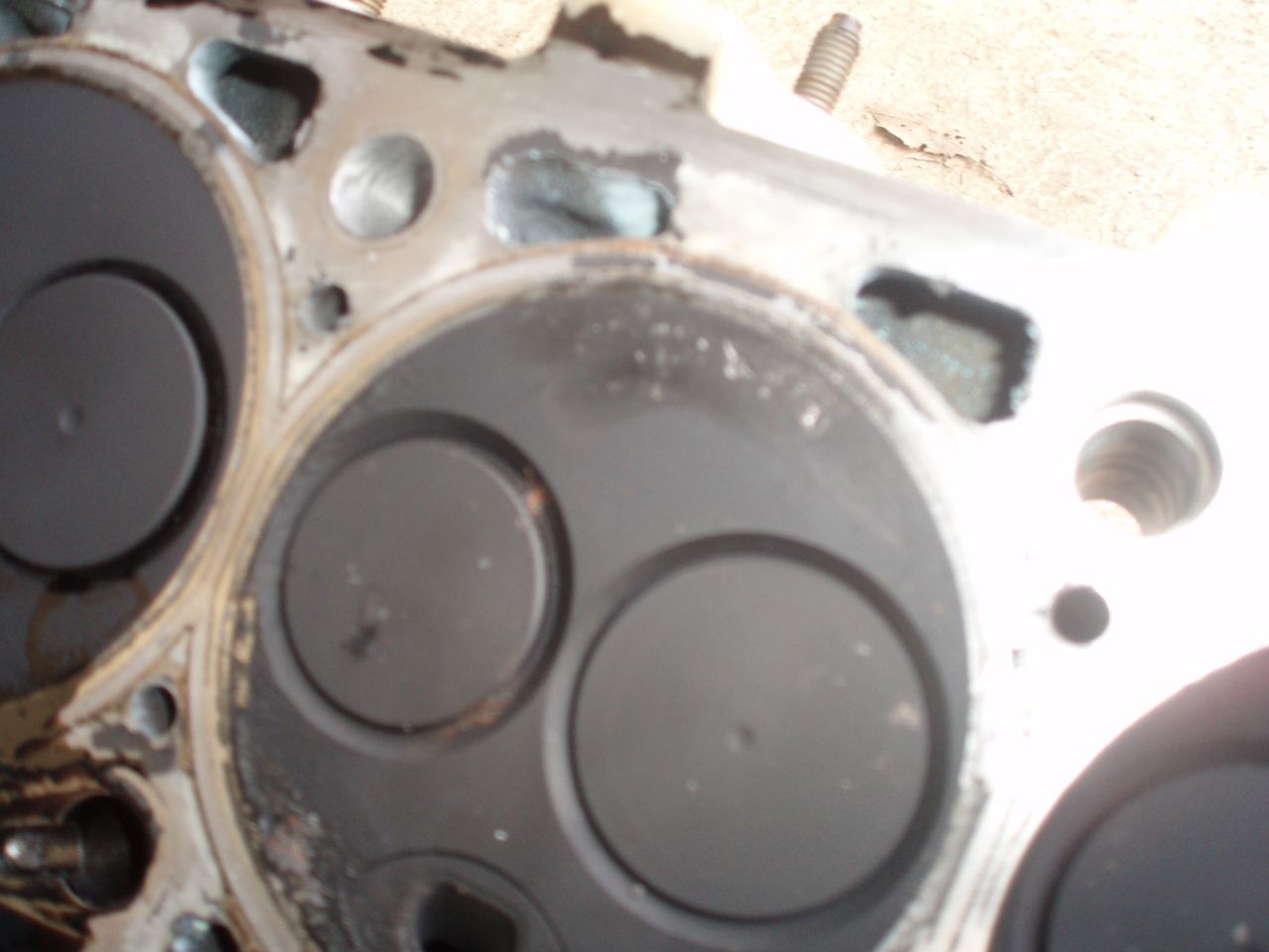 И понеже буса се намира в едно село,което е на 40 км от град Видин,си поръчах по един приятел да ми купи гарнитурата.Пораженията по клапана са поносими,както и нараняванията по главата и трети цилиндър,и по мнението на майстора който ми отвори двигателя,решихме да изчистим парчетата и нагара по цилиндрите и да го затваряме.Тук е мястото да спомена ,че гарнитурата ми струваше 53лв. и някакви стотинки,а майстора ми взе 130лв за операцията.