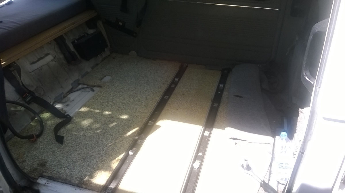 Не знам при другите каравели да ли е така...но като махнах мокета...отдолу имаше оригинална коркова изолация с посока на поставяни и релеф на пода...така че се поставя все едно редиш пъзел.След като я махнах..отдолу излезе оригиналната боя и то без да има и петънце от ръждаПо време на чистенето даже и си намерих пари ....цели 1 евро и 10 евро цента....Ще му върви на пари на този бус