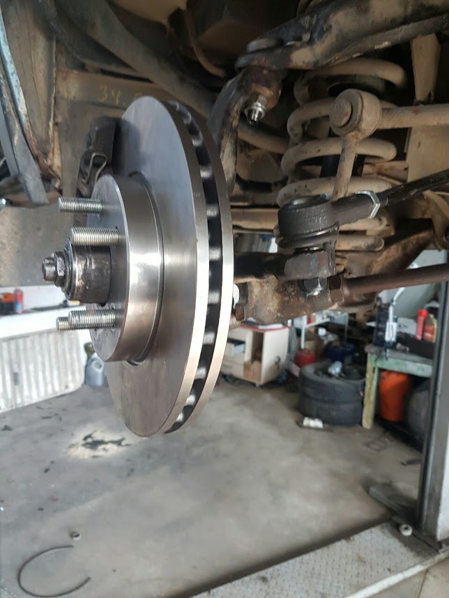 Така и така предницата се разглобяваше, реших че трябва да направя ъпдейт на спирачките. Преди да почнем да се засилваме трябва да можем да спираме :mhihi Направих добре познатия от няколко проекта в клуба вече ъпдейт на спирачките към дискове на 288 мм и апарати от Ауди А6 / Пасат Б5.