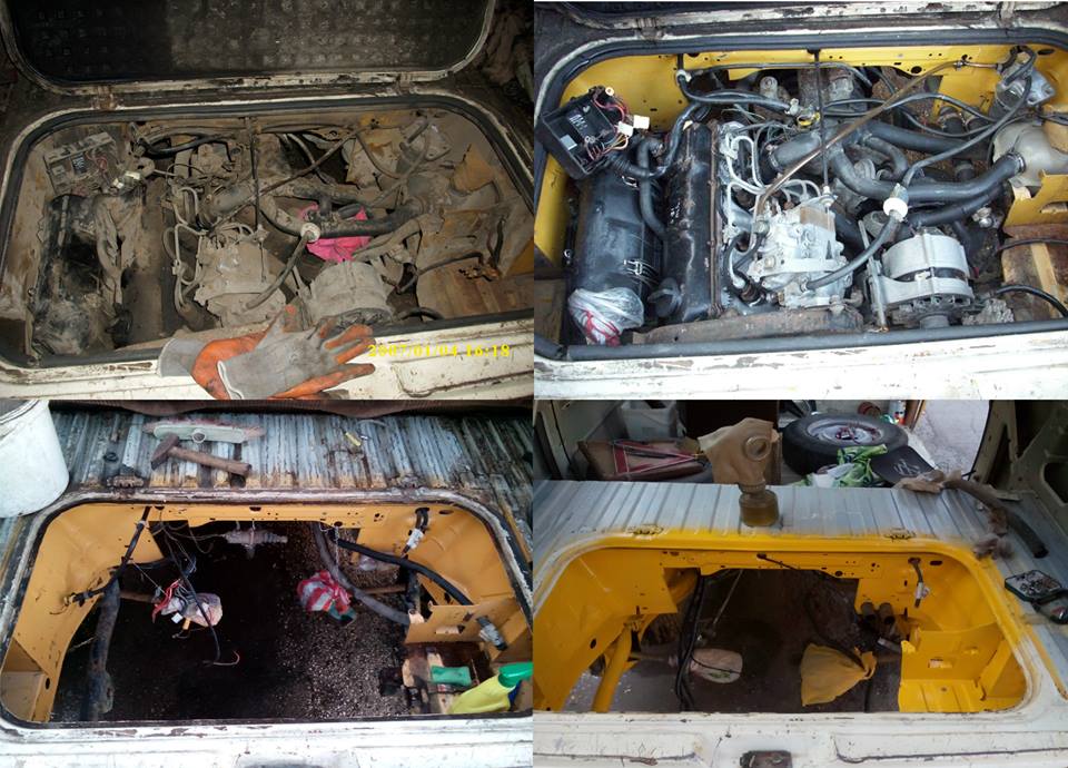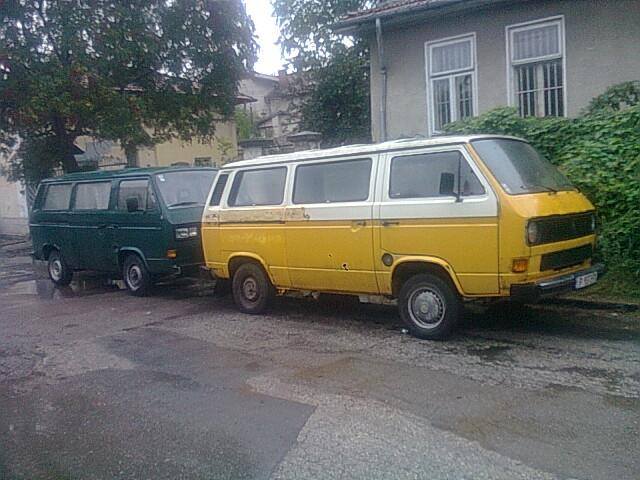 преди година ни казаха че в един двор има 2 буса които стоят от няколко години и ще се продават.Година по-късно отидохме да ги огледаме и си заплюхме единия по-здравия от към купе но пък беше с скъсан ангренаж разбрахме се да вземем от другия кутията и двигателя стиснахме си ръцете.Няколко дни по-късно след като сменихме съединителя на Transporter-а и след като оправихме документите на Caravelle-то отидохме напомпахме гумите натоварихме двигателя и кутията вързахме го и газ към вкъщи.Нещата ще стават бавно понеже съм зависим от времето и нямам гараж Буса е с 5скорости 1989год.
