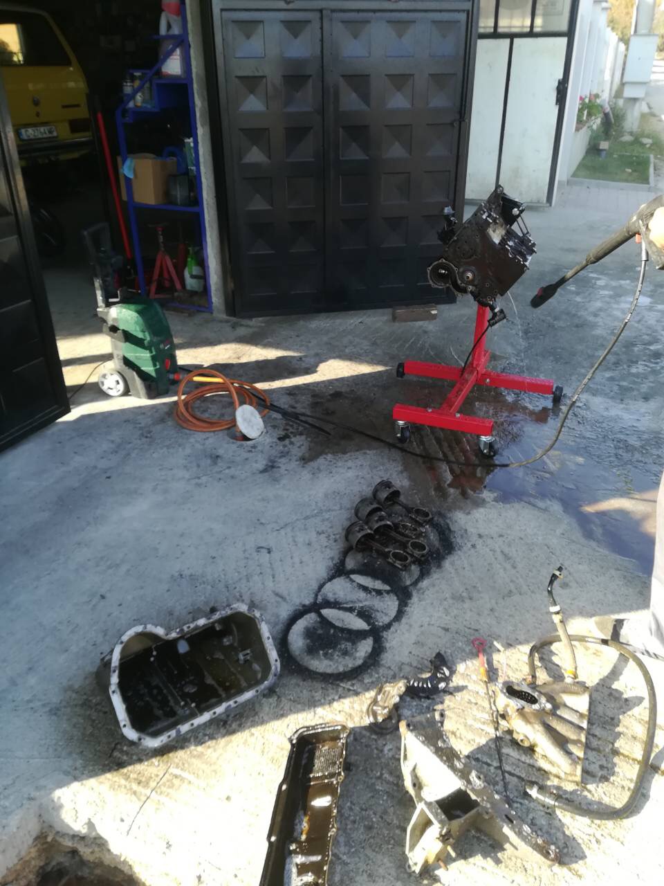 Лека полека започвам да вдъхвам отново живот на бусчето и реших, че първото нещо, което трябва да се напарви, съдейки по състоянието му, е един основен ремонт на двигателя. Въпросният двигател е на незнайни километри (самия километраж на буса е спрял малко преди 400к), 1.8 бензин, 90кс, и е бил едно време на Ауди 80, където също не се знае колко километра е минал! :icon_razz