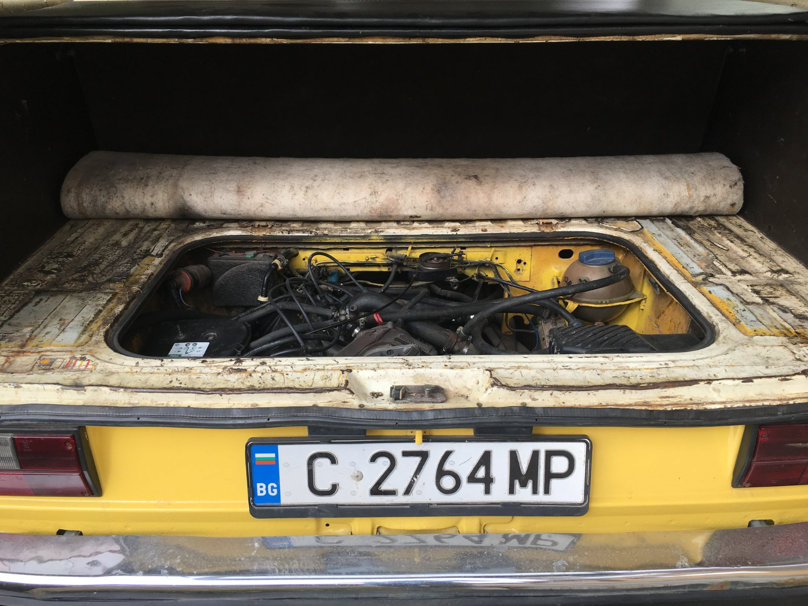 Колега, двигателя от Аудито е паснал учудващо добре, а предишния боксеров мотор се е бил запалил и за това са го сменили! Тази интервенция я е правил предишния собственик и няма нищо, което да стърчи извън двигателния кош. Малко са пренаредени нещата, жилото за газта е направено по изключително интересен начин и акумулатора вече не седи там, а е зад пасажерската седалка отпред в купето. Когато се сглоби и върне в коша ще направя една снимка и ще покажа.