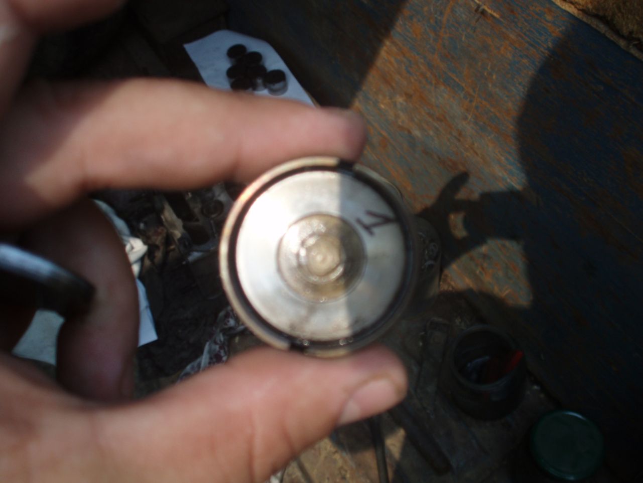 Здравейте маниаци...Малко развитие след затишието което се получи.За съжаление по време на събирането на мотора,възникна един проблем.По време на монтирането на маховика установих ,че не може да превърти мотора.Все едно се срещаше бутало с клапан.Веднага се обадих на доставчика и се разбрахме,ако не му го докарам,да го отворя и отстраня проблема.При положение ,че мотора е на под 60 000км не исках да се разделям с него,щото не знаех какъв ще ми докара друг,пък и се намира във Видин,все пак са 250км до София,предпочетох да го отворя.Оказа се ,че в първи цилиндър се е намърдала някаква шайба :banghead: Също и някакви парчета метал в трети.
