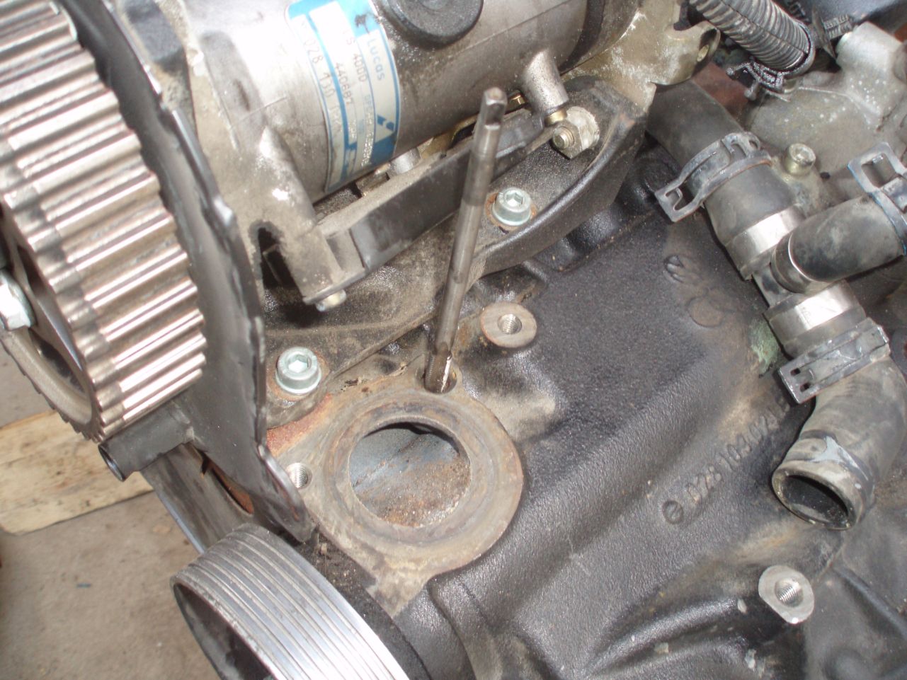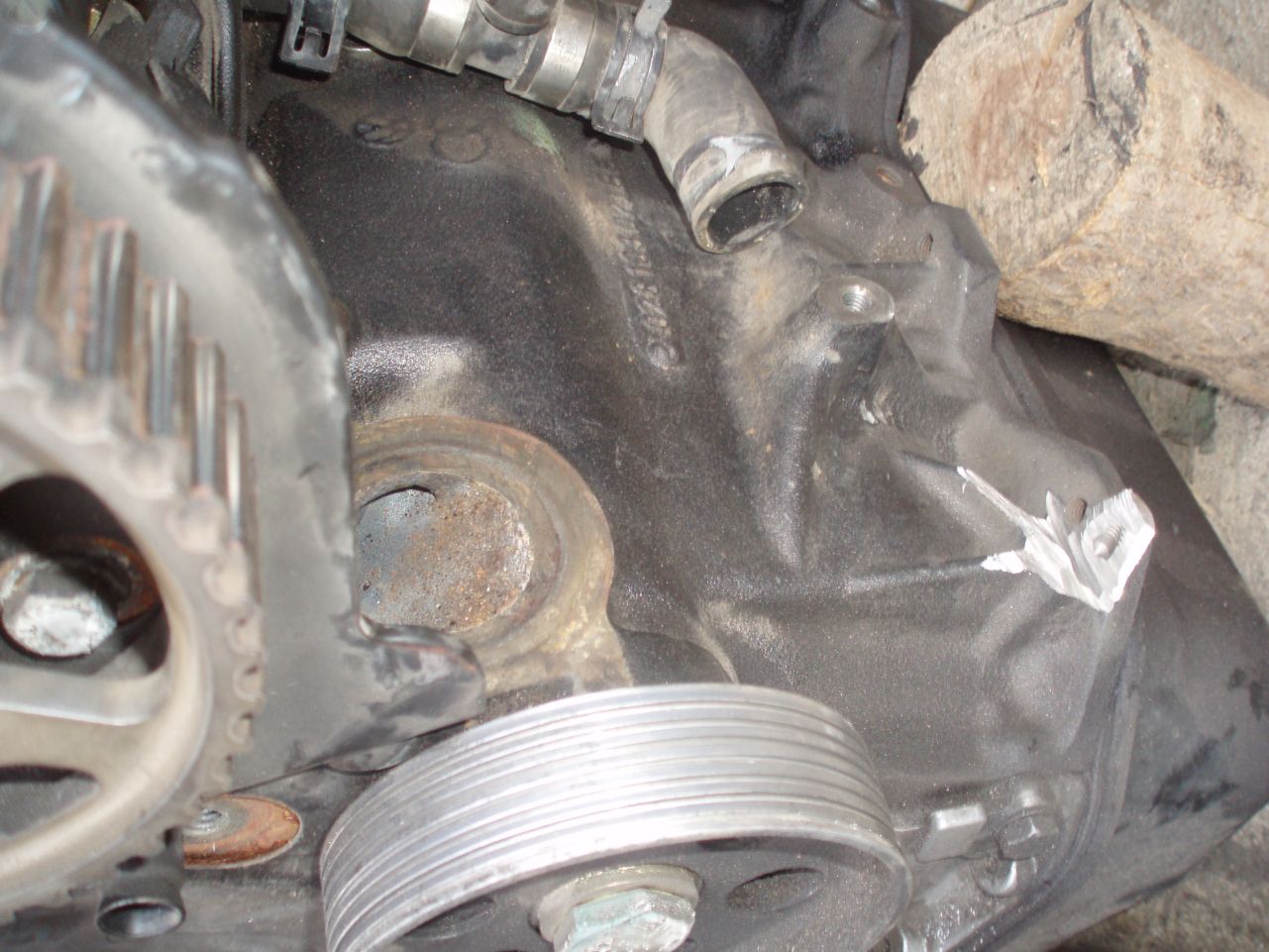 При монтажа на водната помпа се натъкнах на следния проблем.В едната от дупките нямаше резба. На помпата имаше само водач,които влиза в съответната дупка и се наложи да нарязвам резба.Също пречеше едно от ребрата по блока и се наложи да играе флекса: