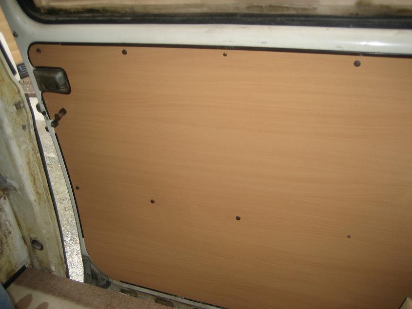 Следващия етап бе намирането на плоскости достойни да заменят полу съществуващите странични такива. Намери се необходимото количество, с подходящ цвят и размер от тази тъй търсена стока, и за разумни стотинки от сорта на 11.30 ми бяха отрязани плоскостите за страничната врата, задната врата, и панела намиращ се между тях. След малко допълнителна обработка с макетен нож за напасване, нещата придобиха много по-цивилизован вид.