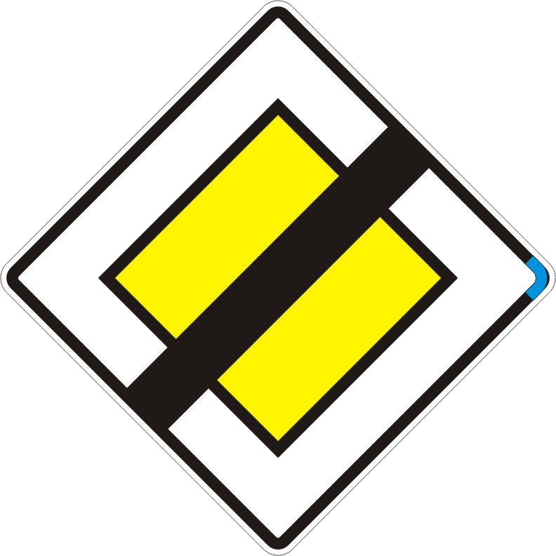 Краят на пътя с предимство е равностранен триъгълник с ъгълът надолу.