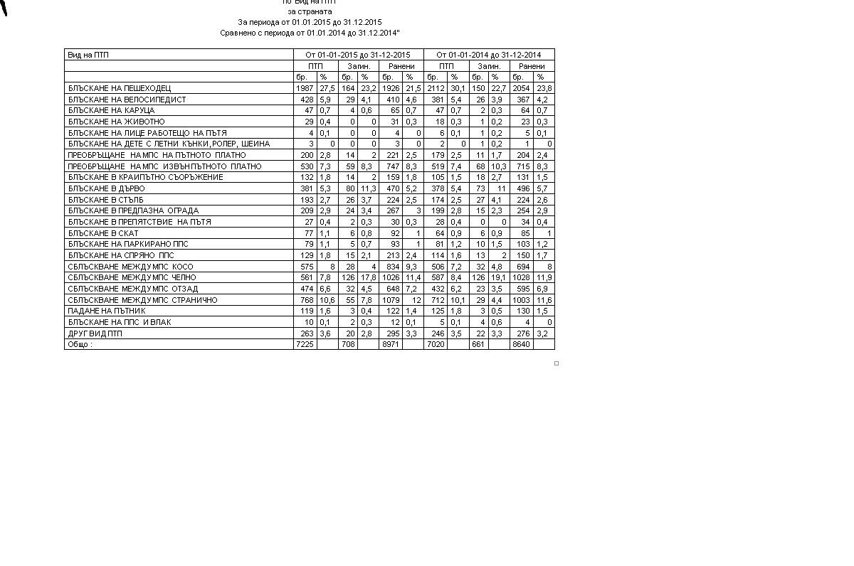 Няма как като инжектоп..да искаш да си на ръба на ограничението в града и да не ти светне,че може да изкочи дете или животно/27,5%/.Да отнесеш някой на пешеходна пътека е същото.Да удариш велосипедист/6%/,да се преобърнеш/10%/,да се удариш в дърво,стълб,ограда/10%/,да удариш друго МПС/31%/ е все същото-несъобразена скорост.Без значение от сезона.Срамота е този рекорд,1/3та от произшествията да са беззащитни пешеходци,пометени от коли.