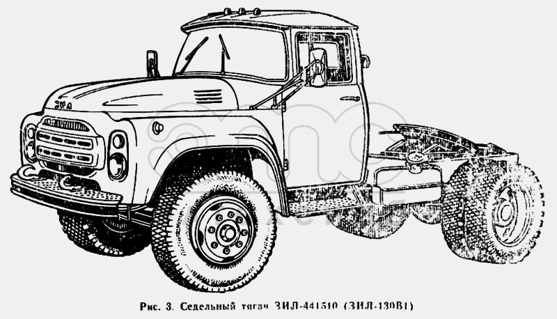 седельный тягач ЗИЛ-1 ЗОВ 1 (база 3300 мм) для буксировки различных полуприцепов с грузом общей массой, включая массу полуприцепа, 12 400 кг по дорогам с твердым покрытием