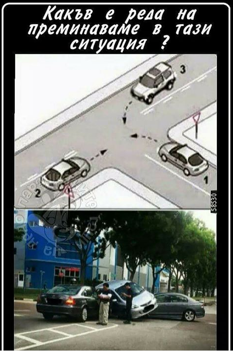 Само дето ми се струва ,че на това кръстовище и пред жълтия би трябвало да има знак СТОП ,а не какъвто е на картинката !