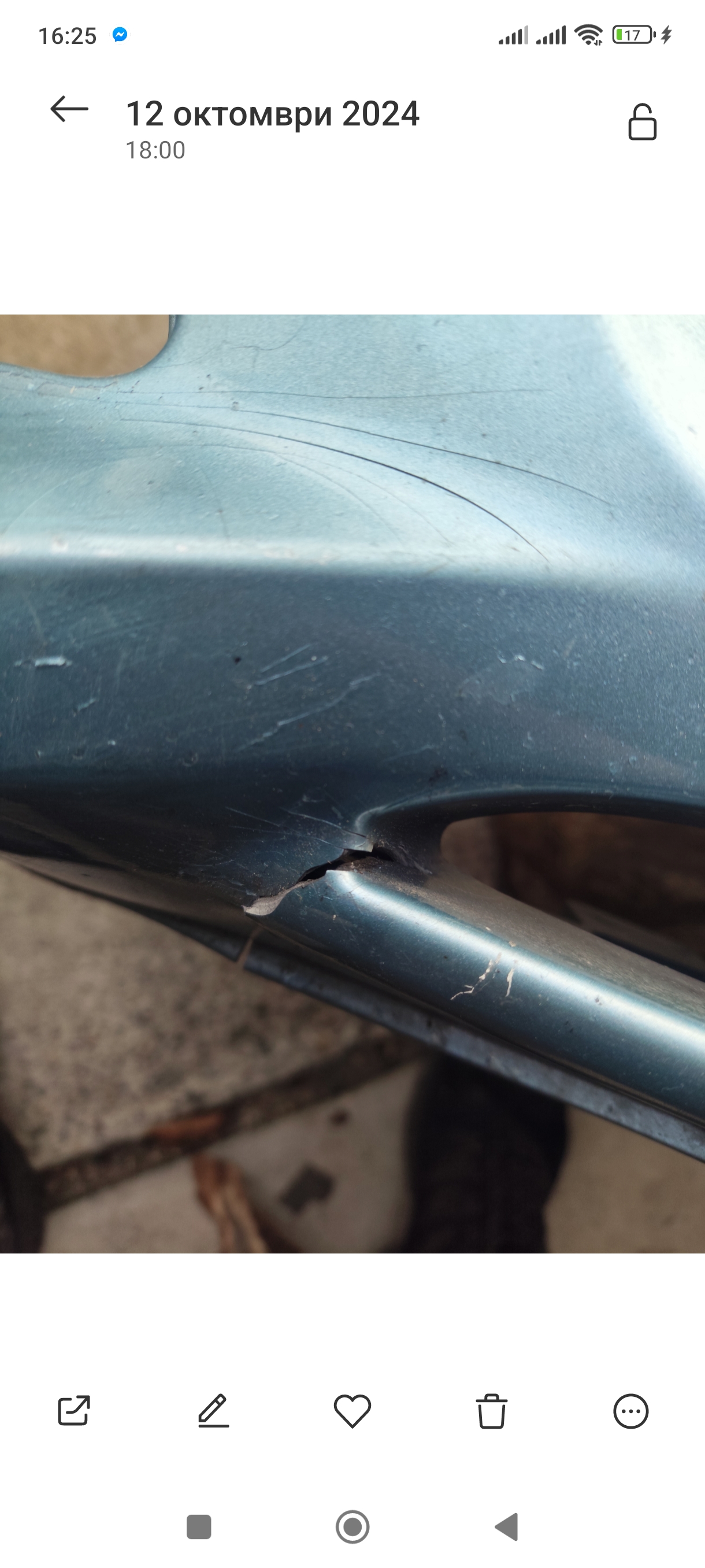 Фар, халоген, решетка на халогена, ожулена броня, решетка и преден капак + леко деформирана и сцепена на 3 места броня.