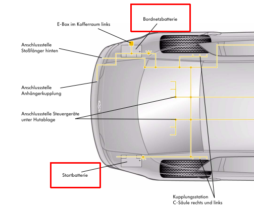 От VW има предписание, винаги да разкачиш първо стартовия, а после помощния акумулатор. Свързването е в обратен ред. Това се прави, за да се предотрати неволното прекъсване на тоците чрез пиропатрон в посока стартера.