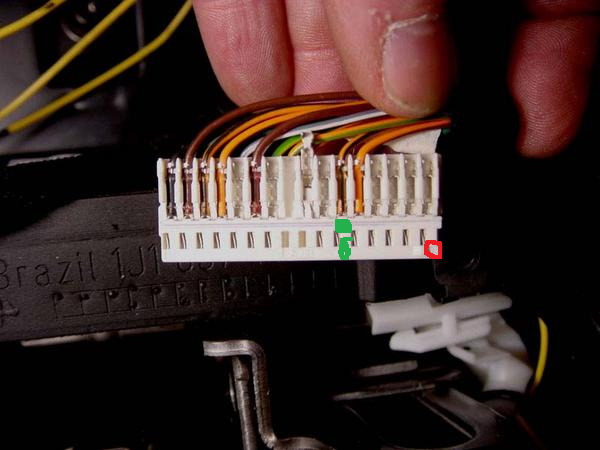 Тук с червено съм заградил, където пише 1 - там е първи пин! По него се ориентирате кои номера са другите, защото те не са надписани. Където е зелената точка се пада 6 пин, който ни е необходим.