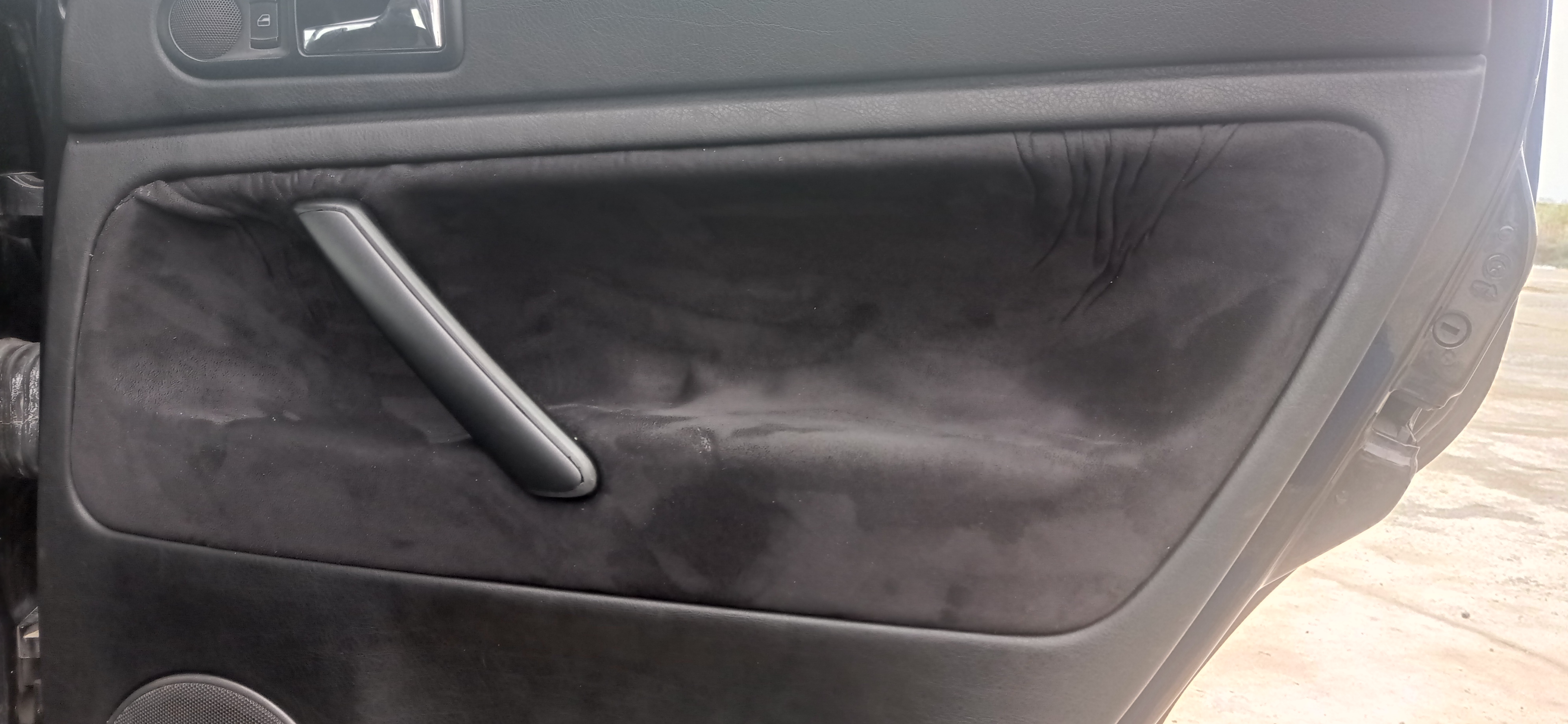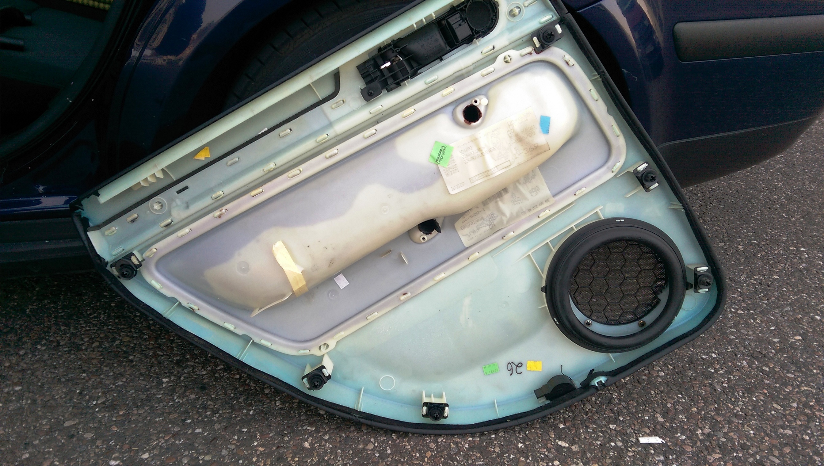 Свалих задна дясна кора и дойде първата изненада. Кората с тапецерията е пластмасова. Колата ми е Пасат Б5,5 произведена ноември 2001 година.
