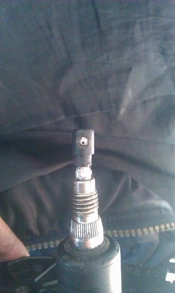 На вала нарязах резба М8 (вътрешна). Разпробих отвора с Ф3.7 там, където след това набих дюзата от Голф3