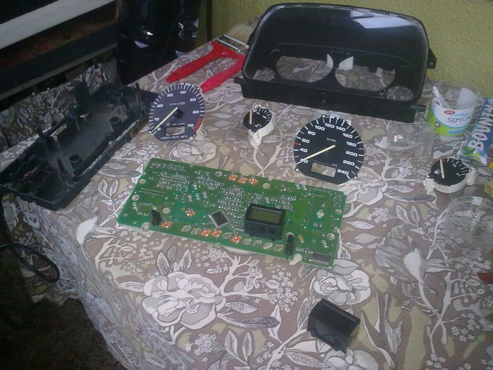 Днес със разтреперани ръце махнах старото табло със часовника.И поставих товото от gti със оборотомер.След проба показва си нивото на горивото.Температурата на охладителната течност.Оборотомера работи.Километража също.Остава да се засече дали показва вярно километрите в движение.