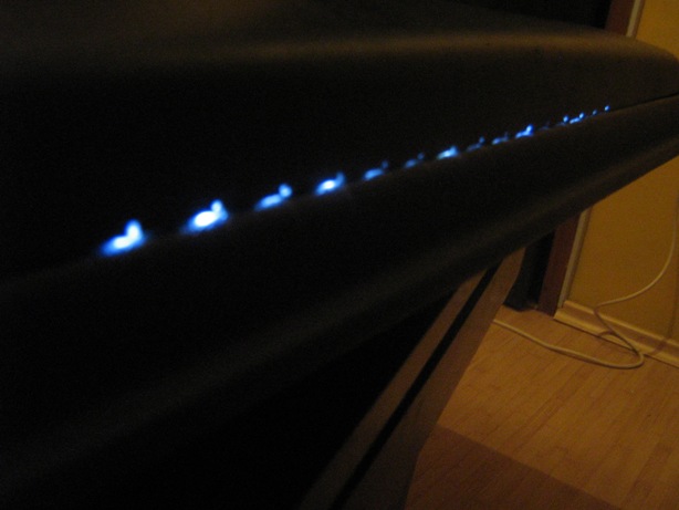 Към същия син кабел съм свързал и светлините в краката(които са 3 зелени светодиода + резистор 1килоом). И когато пусна фаровете/габаритите веднага ми светва в краката и ако отворя врата светва и багажника :).