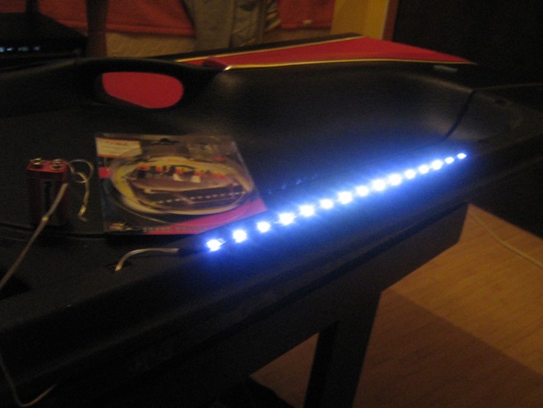 Аз също мога да дам една идея, която тук не видях. Защо не свържете + на светодиодната лента(или каквото друго използвате) към + на кабелчето за габарити. Така ще свети само когато са пуснати габарити/ фарове ;).