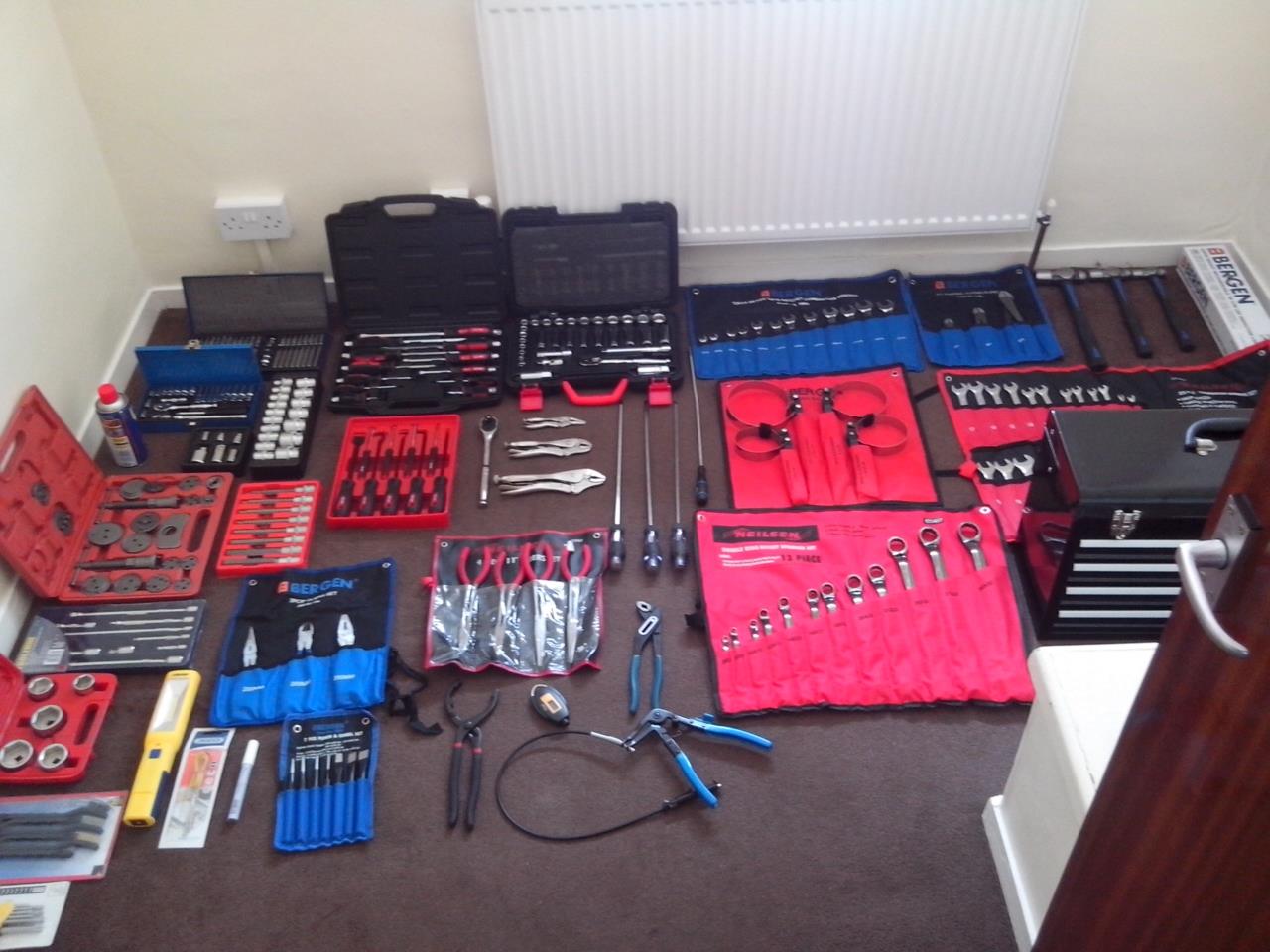 За мен темата е интересна и ще се радвам на нови идеи.Нямам гараж и всички ремонти се правят на полеви условия и се налага пренасяне на инструменти. Инструментите който ползвам по колата са събрани в метален куфар като на колегата.