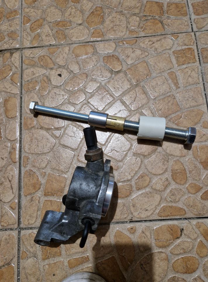 Семеринга ми беше дал фира и от там лагера пълен с ръжда и мизерия. Заврях пръст да видя дали се движи и пластмасовата му част се разпадна. Яко чистене и четкане на целия избирач отвън да падне всичко мизерно и дойде време за лагера. Нямам дремел да пиля корпуса на лагера отвътре. Доста умувах как да го извадя само с подръчни средства без да счупя корпуса на избирача. Задължително според мен е менгеме, добарах се до едно такова. Самоделката e от: