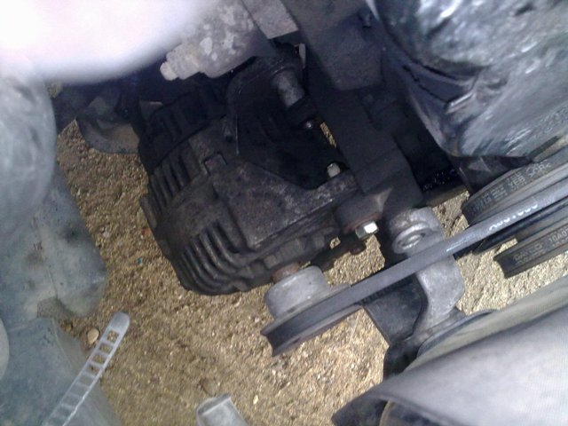 5. Демонтирам стария морално остарял генератор и монтирам модерния генератор от А4ката. Ще използвам снимки на колегата svetliosabev който на същата кола като моята (Audi 80 1.6 td) е монтирал генератор обаче 120 амперов, по същия начин, само дето е по едрогабаритен. Нямах възможност да снимам моят докато го монтирам.