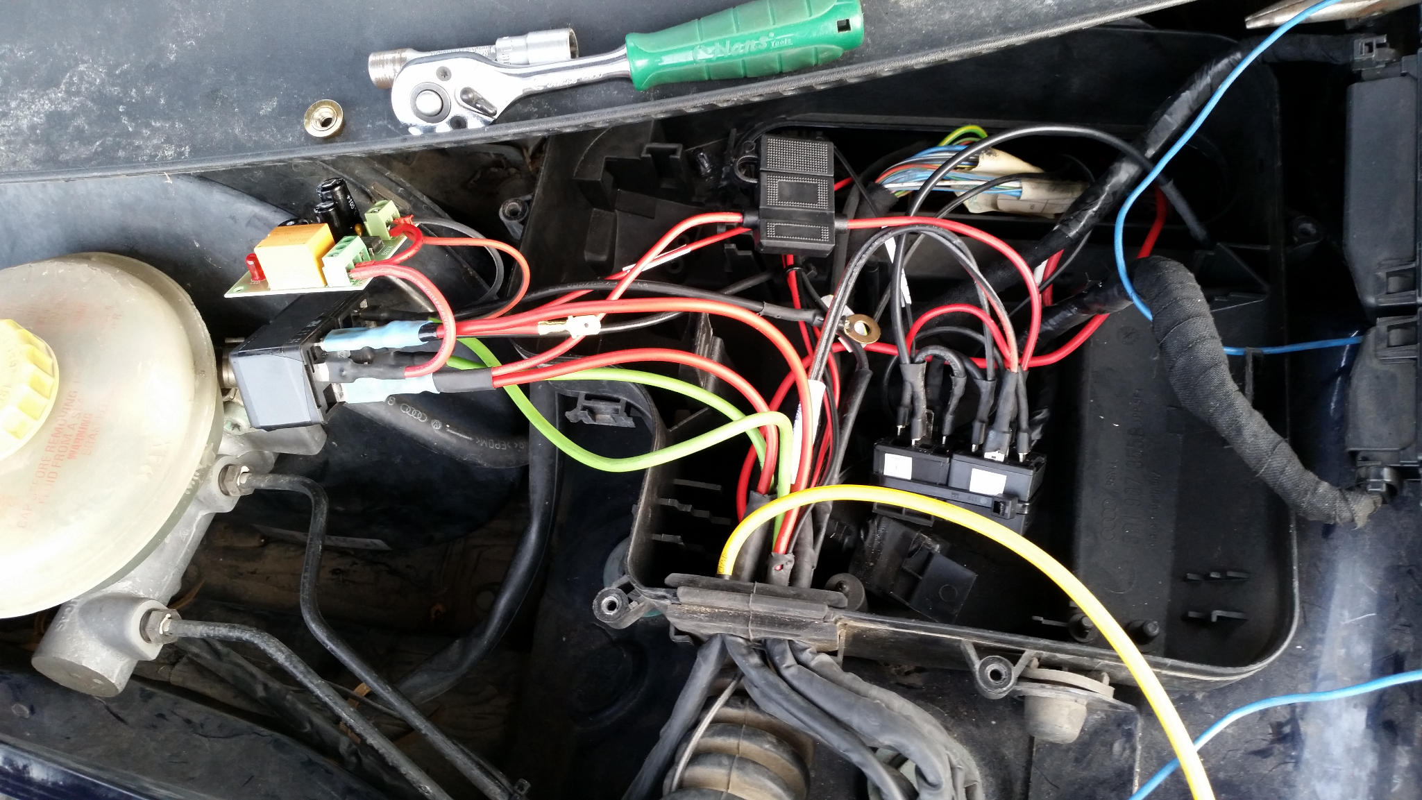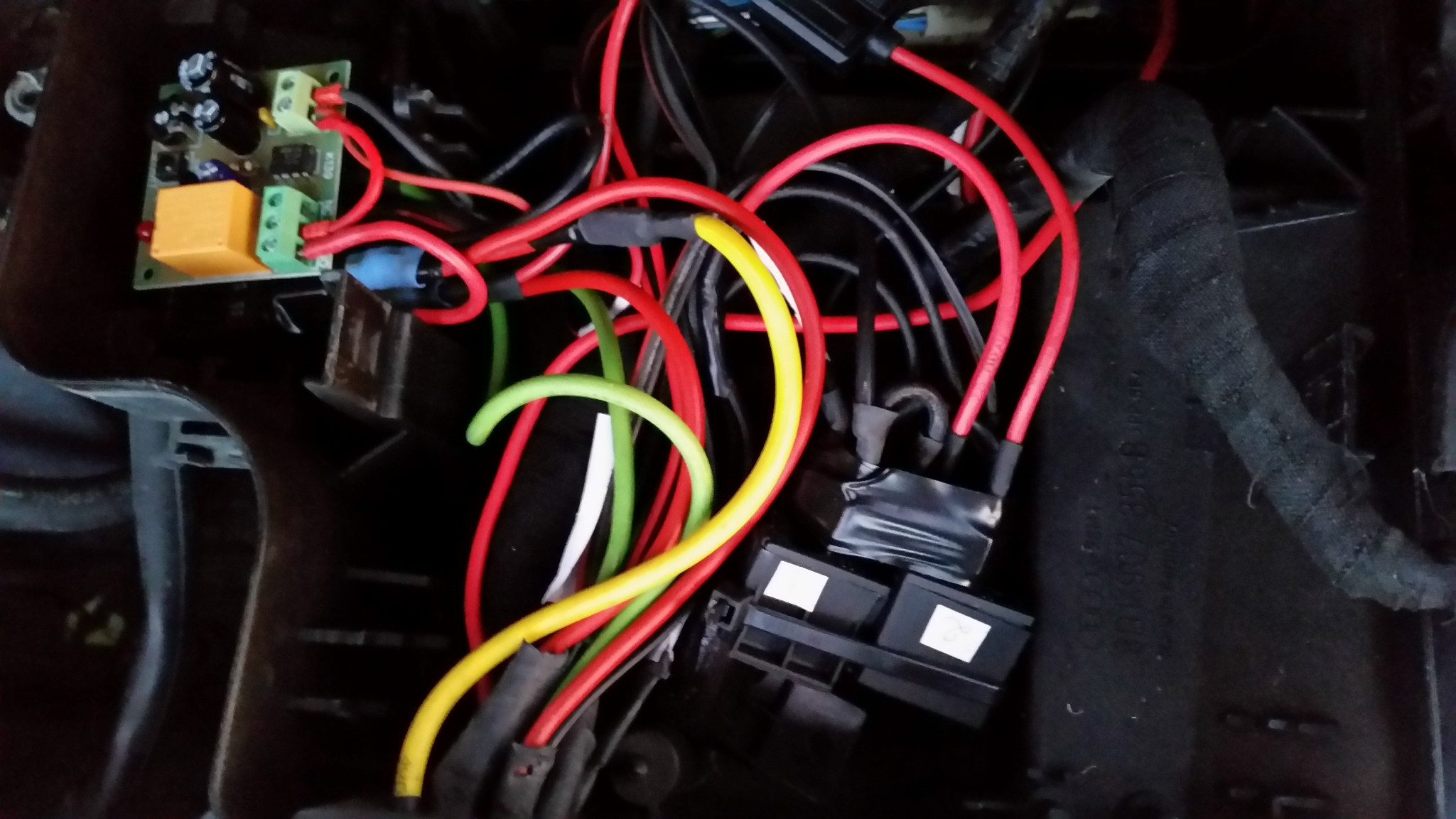 При достигане 7°на околната среда съответно активира реле и то вече подава напрежение на всички останали релета, които включват подгревите на антифриза, на маркуча и на пръскалките и бързоварчето в казанчето на чистачките. Подгревът с маркучите от малкия кръг работи постоянно и ми топли течноста на чистачките целогодишно, което има много голям ефект да се мие с топла вода предното стъкло, измива всичко по него.