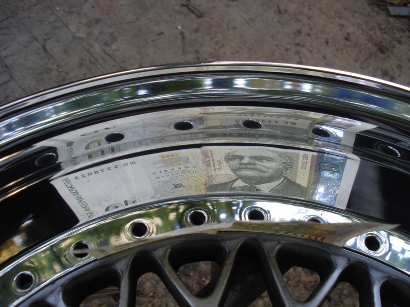 Подобно като на снимката по-долу, на която освен между лъчите е боядисана и част от борда, в цвят какъвто си го избереш, аз го бях видял в черен мат + допълнението, че самият ръб на борда също е полиран.