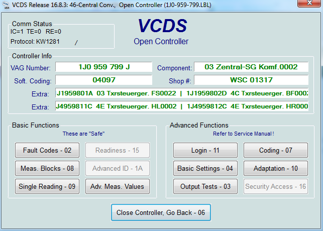 Re: Функция вдигане на прозорци с USB VAG-COM указания