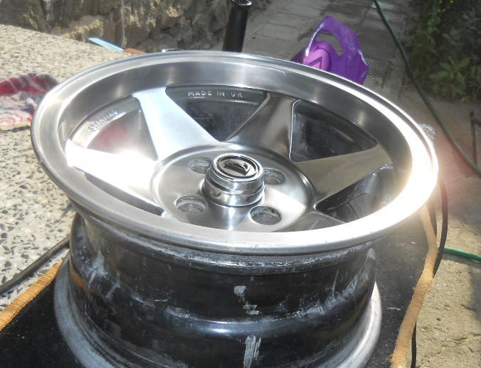 Подобен случай с още по тежки показатели!!! Джанти,някакви,Тайвански,съвсем по женски знам само че са за Ауди! Имат 20 добре подострени спици на които в основата растоянието е на 2мм от борда,а в най широката си част 5мм! Няма шанс да се бръкне с пръсти и шкурка,още по малко да влезне шайба за полиране! Какво решение намерих! Сваляне на лака с четка за рисуване и Боди 700,внимателно отстраняване на лака,за да не се нарани полирания заводски борд,след което,се започна оправянето на ръбът на борда и достъпната част,като оставих около 1см до спиците,без да го търкам! В крайна сметка се опитах да полирам с преливане от това което беше заводски полирано и това което полирах аз! Най накрая се минават и двете части с мека и тънка вентилирана шайба и финализираща паста за да се оеднаквят двете части! Ето и малко снимки!