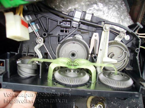 Скоростия лост не се сваля, таблото с уредте също не е необходимо да се сваля, както и цялото табло, просто се повдига от дясната пасажерска стена и кутията с клапите излиза навън. Тука няма климатик, който да пазиш и пречиш. Измъква се, ремонтира се и се сглобява за 2-3 часа. Ако през това време ти се налага да ходиш някъде, просот не почвай ремонт, въпреки че пак ще можеш да си караш колата