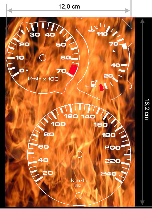 колеги , трябват ми размерите (точните) на Ф-тата вътрешно на скоростомера,оборотомета съотвтно за тях и хордата отдолу ,бензиномера и за тенпературата