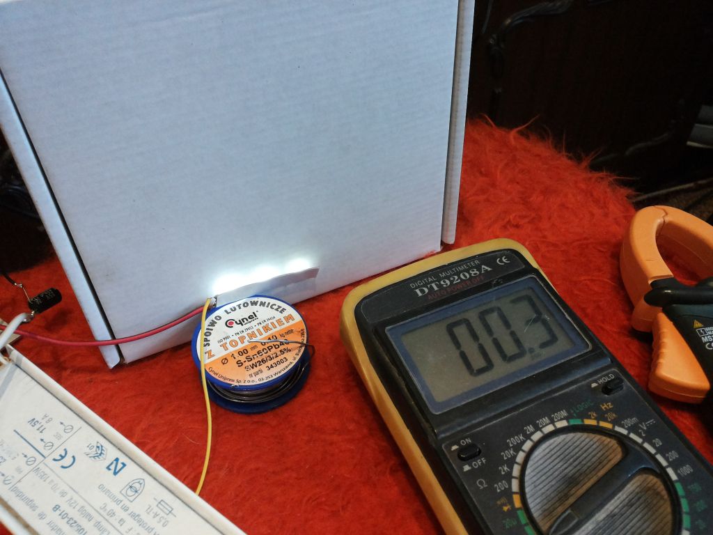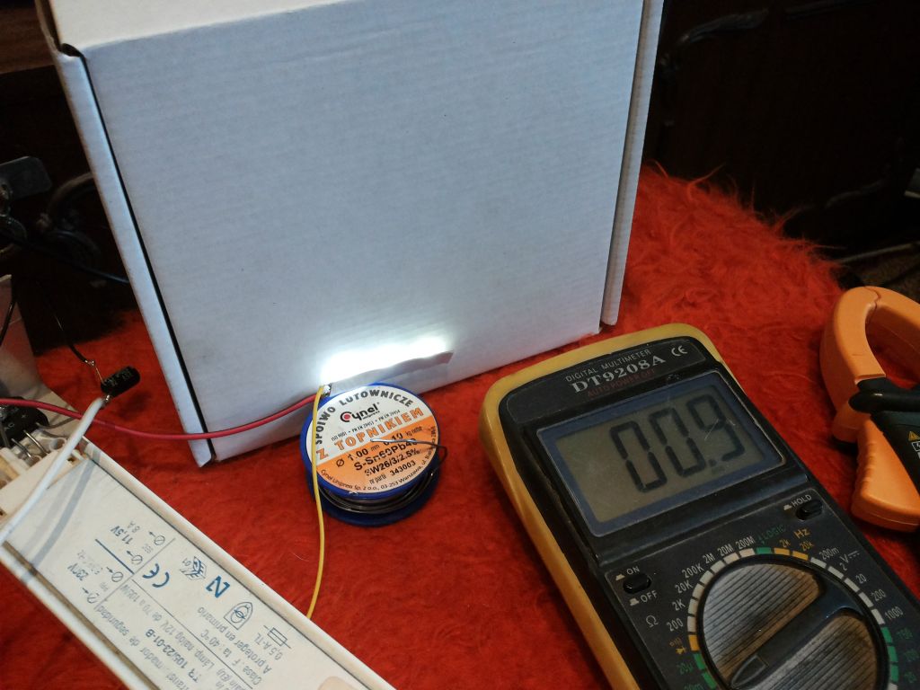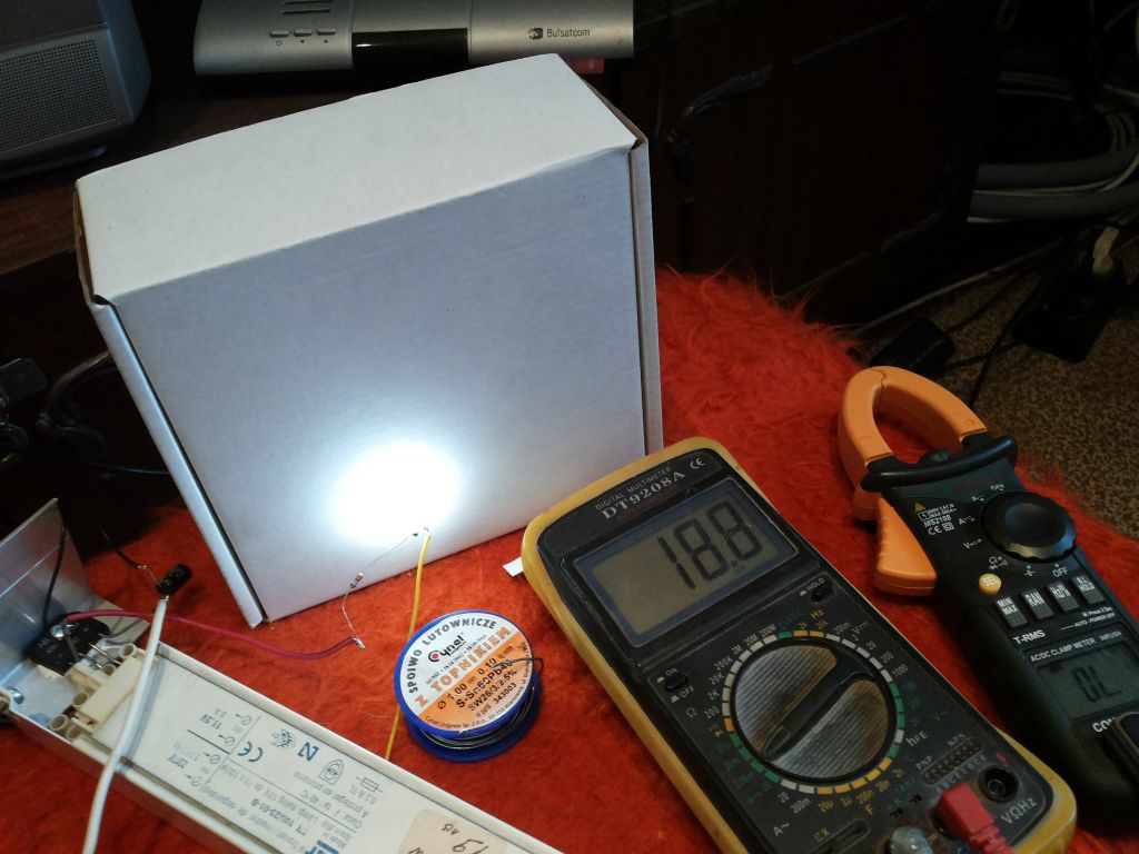 Моите снимки са правени при угасена лампа, фона е тъмно одеяло и съм сложил и част от календар. И на двете снимки светят и двата диода, но единия го засенчвам с парче станиол. Единия диод е с 1кОм, а другия с 5,1кОм. И аз съм използвал част от бяла ЛЕД лента, но диодите ги захранвам директно без вградения резистор.