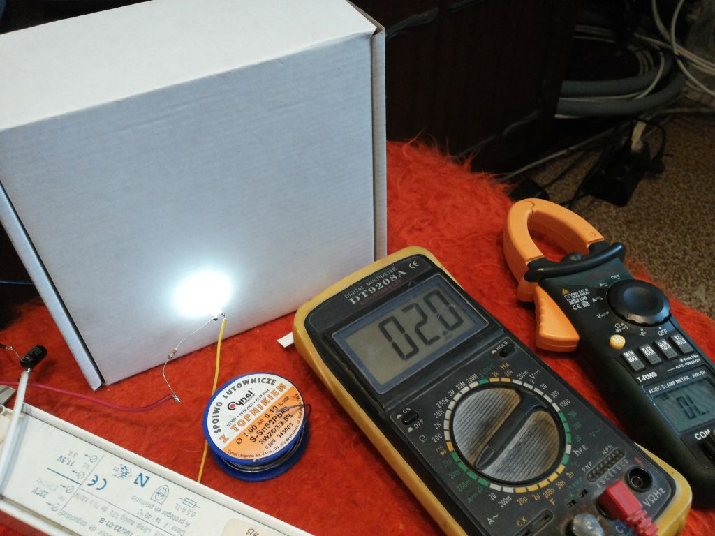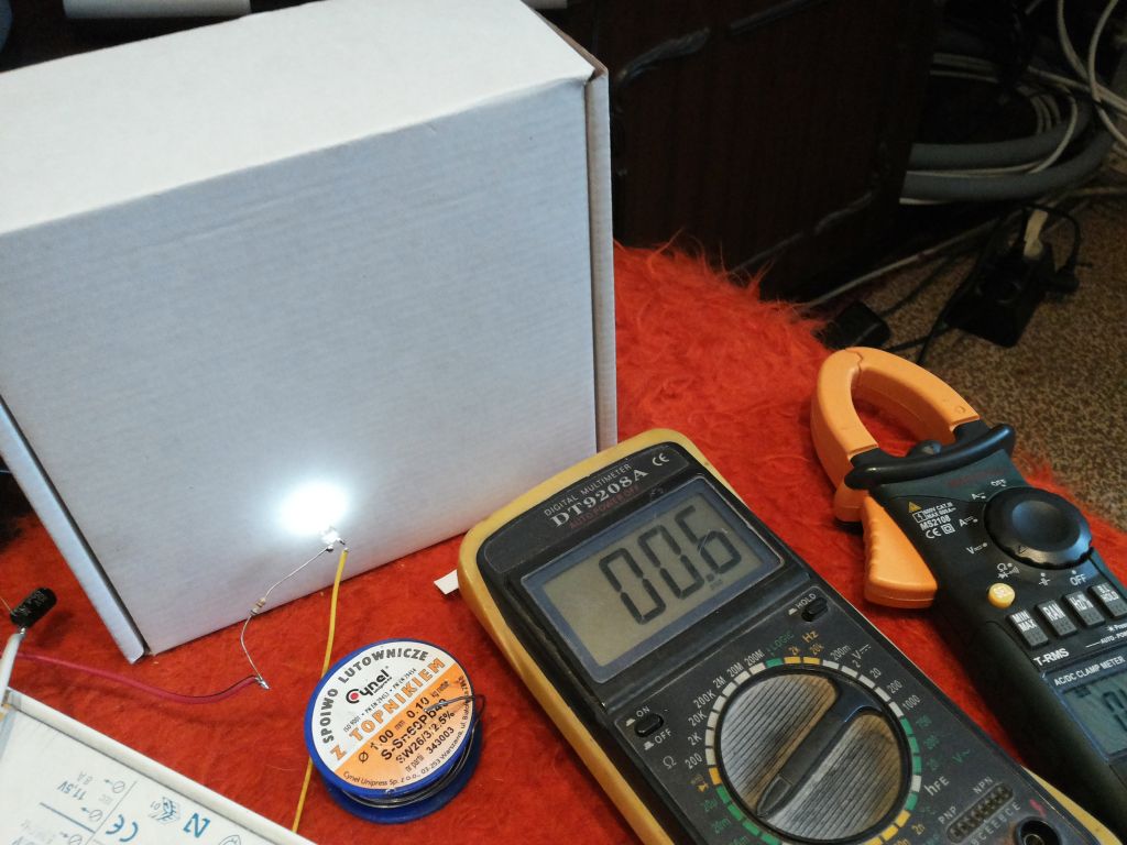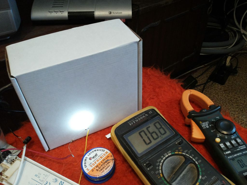 И още един опит за сравнение обикновен бял диод силносветещ разсейващ.Токоограничаващ резистор 680 ома.