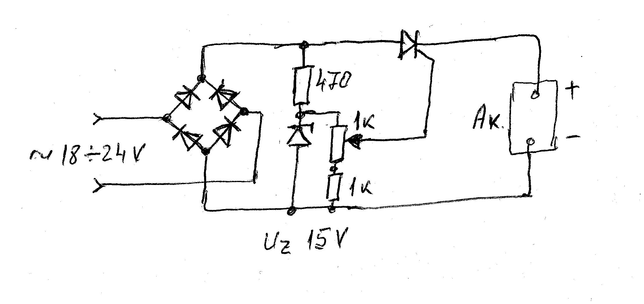 Още по-отделно, на входа на схемата е дадено до 25V. Да приемем, че е 24V, представяш ли си какво ще стане ако в един момент за нещастие тиристорът се отпуши и направи верига към акумулатора, който е 13V или още по-зле 10V щом ще го зареждаме, какъв ток ще протече .... и кое ще устиска ...
