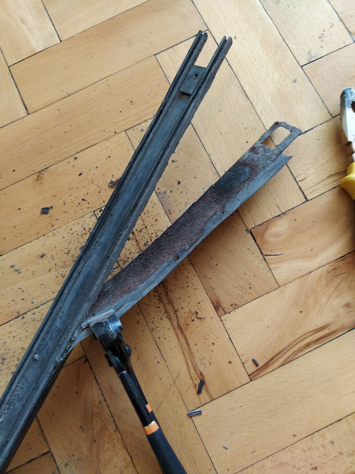 Понеже тъпата ламаринка дето гние е по средата, ако е добре изгнила и внимавате, външната част може да се обели..И да оцелее само единия канал е достатъчно.
