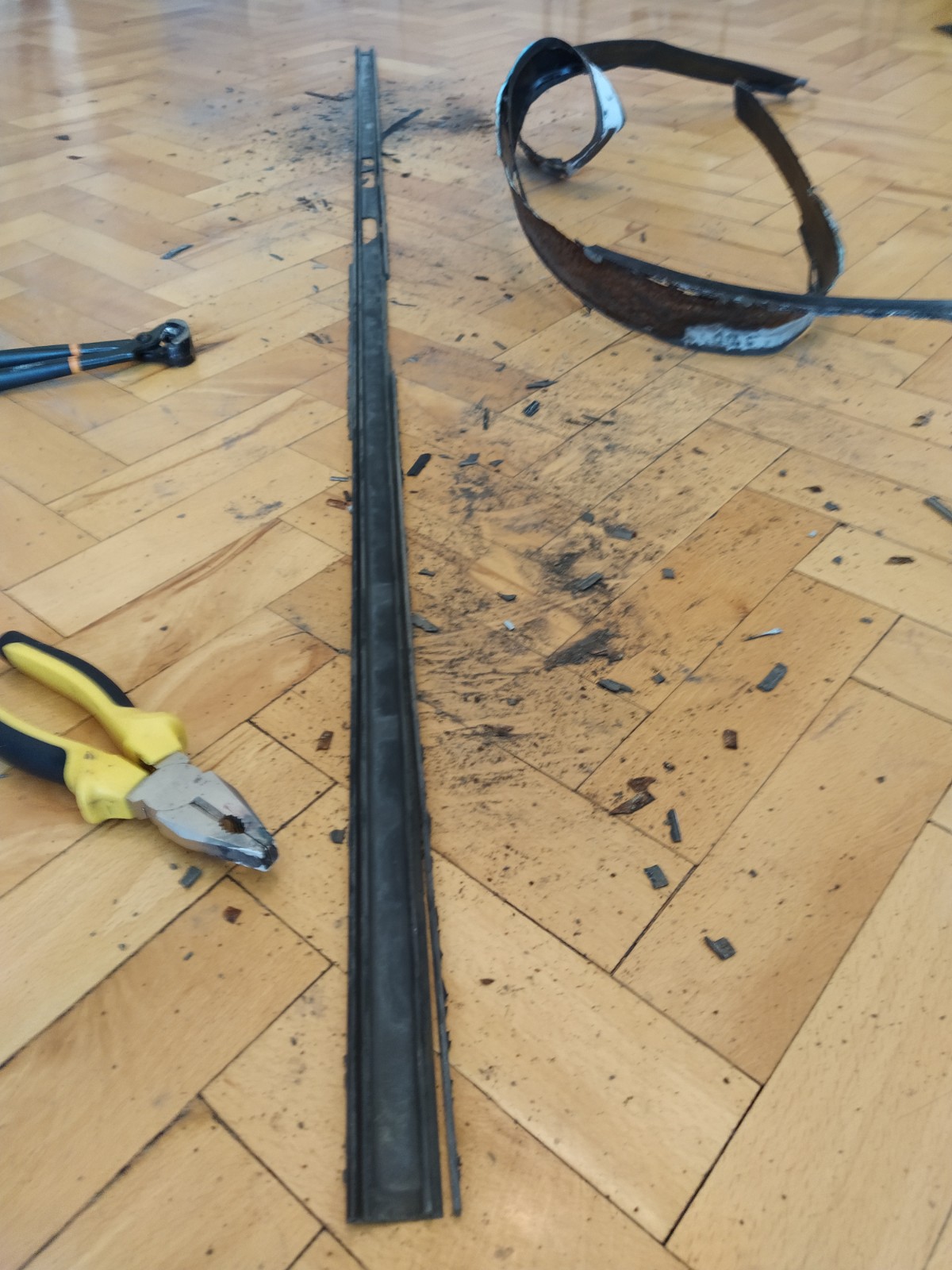 - сваляте задните тапи и вадите тъпите лайстни. Щипките на тапите се трошат щото и там има изгнила ламаринка.