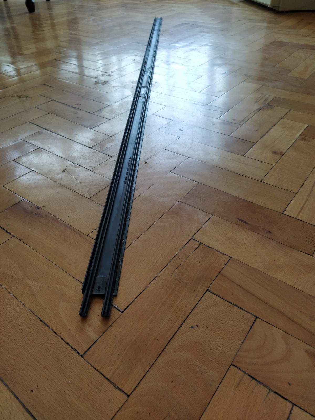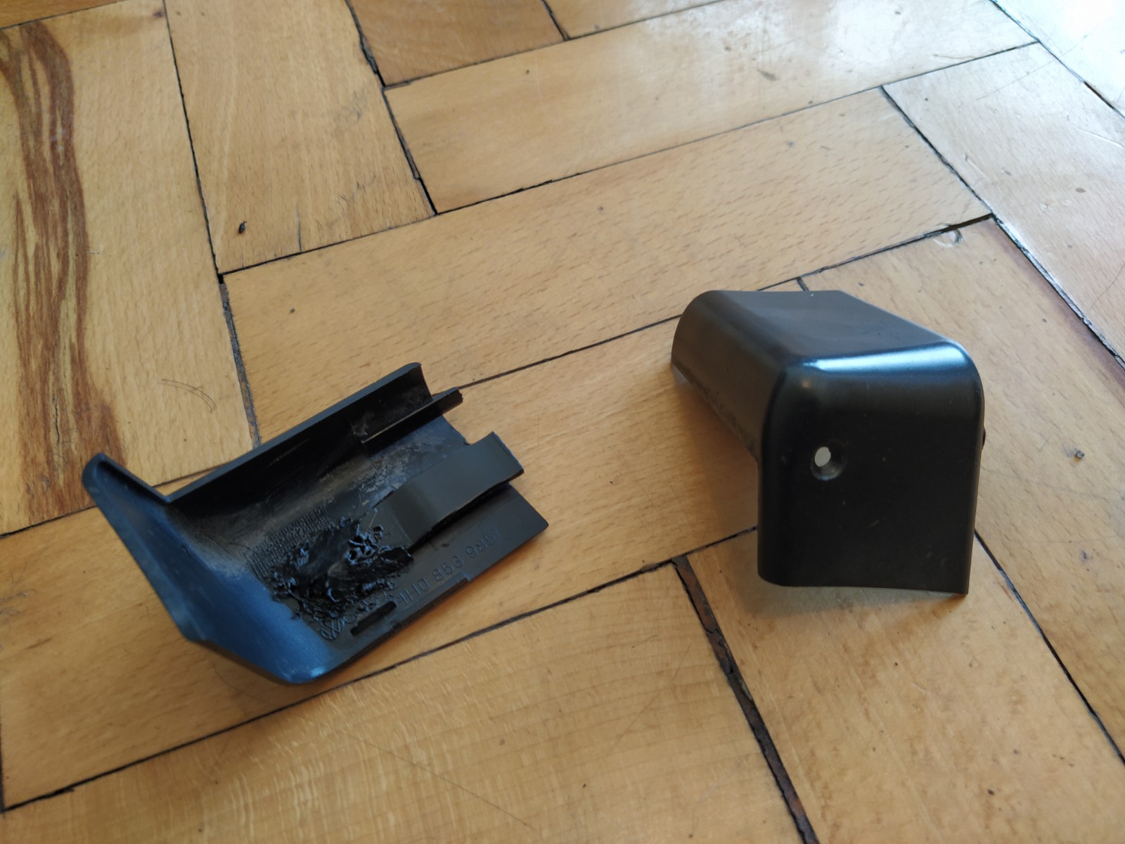 - белия е по дебел и здрав и има закръгление на ръба,но избрах черния от мързел понеже дългата страна съвпадна 1:1 и остана да отрежа късата страна малко и освен това е черен и няма нужда от боя