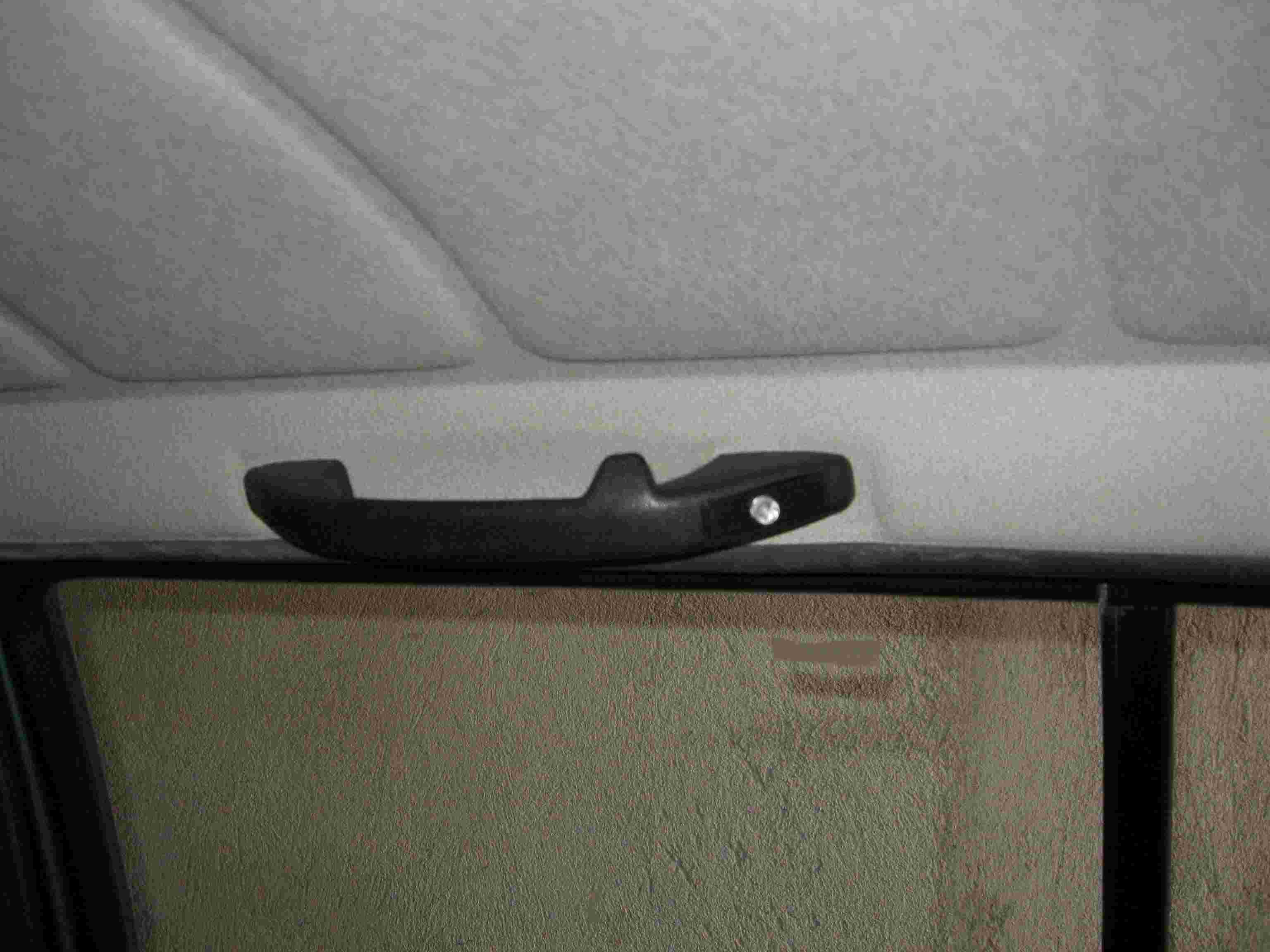 4. Пускаме едно кабелче от предния плафон назад към задната врата. Аз избрах той да минава между гуменото уплътнение и тавана, така че да не личи, че там има кабел. Няколко сантиметра преди да го изкараме от единия болт на дръжката над вратата го съединяваме с кабел, който отива за другата задна врата. Той минава нататък под гуменото уплътнение, след което минава през задната колона, там където обикновено са хванати с болт задните колани и се спуска зад задната кора. След това по обратния път отива към другата врата и излиза пак през дупката на единия болт, който държи ръкохватката над вратата.