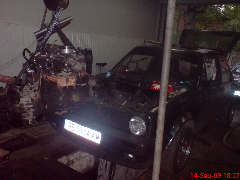 Заради така познатия ни звук от едно време тип "Москвич" от диференциала реших че и скоростите са ми за смяна а и като отворя ДВГ-то ще излезнат други неща реших че ще имам нужда от донор за части от приятел намерих двигател от "Seat toledo" който трябваше да е 1.8 Mi но по код се оказа че е 1.6 Mi + скорости и почти