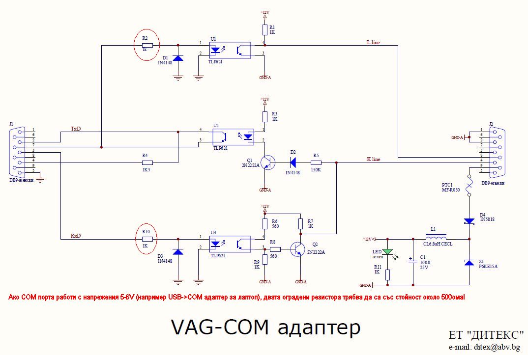 Искам да го направя към COM-порт, не към USB. Имам и две схемички за K-L адаптори. И двете са с MAX232, едната е с оптрон, другата - без, има и други разлики... Ще ме посъветвате ли коя да направя? Не съм сигурна коя ще тръгне на колата.